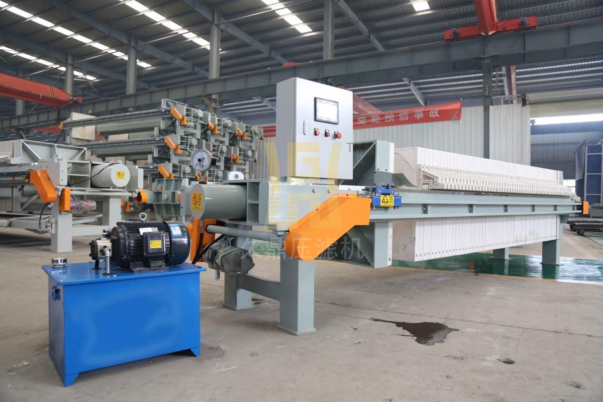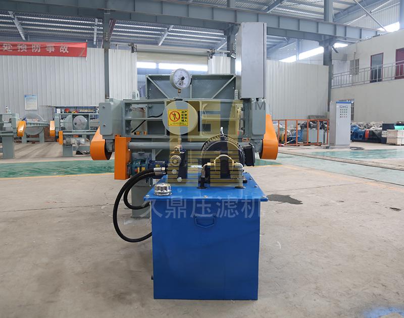 自動拉板壓濾機采用PLC控制, 能對壓濾機進行各項操作(如濾板壓緊、集液板合并和開啟、松開濾板、拉開濾板),并留有遠程控制接口,能遠程自動操作控制。適用廣泛,處理量大,使用壽命長,高效節(jié)能,性能穩(wěn)定,過濾后,泥餅含水量可低至10%-30%。